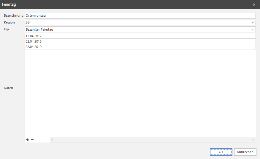 In den Feiertagen werden alle lokalen und gesetzlichen Feiertage für die entsprechende Region erfasst. Die Feiertage werden beim Vorschlag der Personaldisposition berücksichtigt.