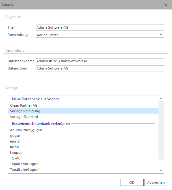 In der Mandantenverwaltung werden die Mandanten (Datenbanken) von Aduna Office und Topal verwaltet und hinzugefügt.